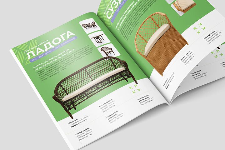 Разработка макета каталога мебели с ориентацией на визуальную презентацию продукции.