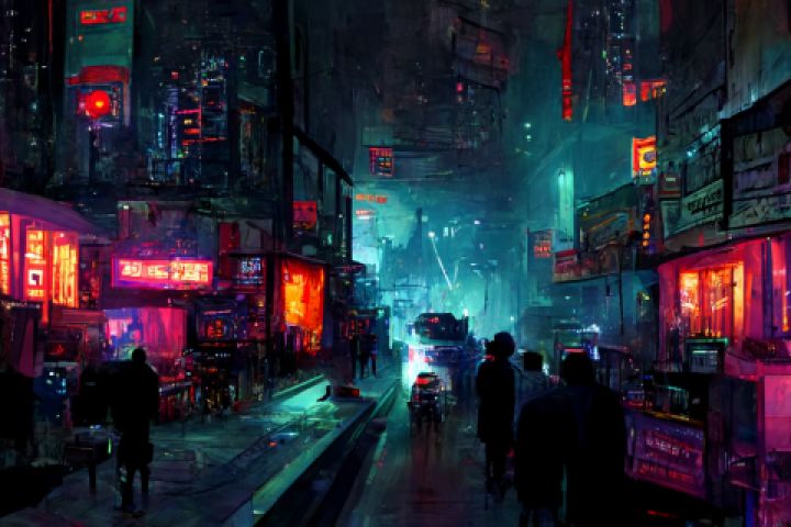 Вдохновлялась игрой Cyberpunk 2077. Переулки ночного города будущего.