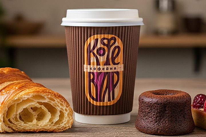 Логотип успешно интегрирован во все элементы фирменного стиля, обеспечивая его высокую узнаваемость и создавая целостный образ бренда "КофеВар". Он эффективно коммуницирует название и суть заведения, привлекая внимание и формируя положительные ассоциации у потребителей. Успешное масштабирование логотипа от мелкой детали на стаканчике до крупного элемента интерьера демонстрирует его продуманный дизайн и универсальность.