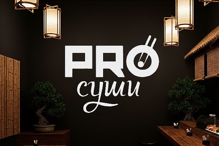 Графический знак: Буква «O» в слове PRO стилизована под ролл, который держат палочки. Это создает прямую ассоциацию с продуктом, не перегружая логотип лишними иконками.
