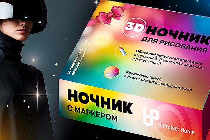 Клиент: «U Project Home» — бренд, предлагающий инновационные товары для дома, декора и творчества (в данном случае — 3D Ночник для рисования).