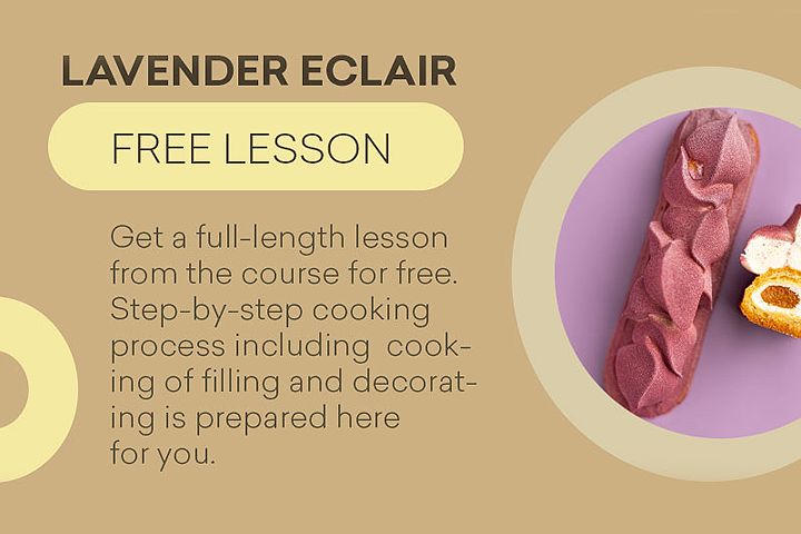 Разработка визуальной структуры и дизайна блоков для мобильного сайта (Taplink), продвигающего профессиональное обучение по приготовлению эклеров и заварного теста.