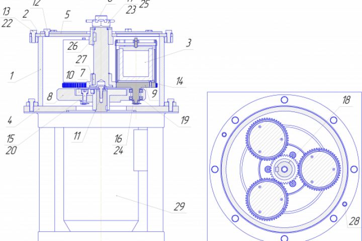 создание 3D модели шаровой планетарной мельницы создание 2D чертежей с использованием 3D модели шаровой планетарной мельницы
