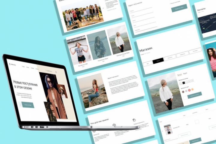 Я решила создать интернет-магазин одежды. Это был не лендинг а полноценный многостроничный сайт. В этой работе я выложилась на все 100%. Там был и параллакс (это движущаяся картинка в первом экране), и слайдер (текст в певом экране), и табы (на странице Магазин).