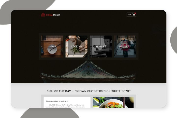 Было желание поработать над дизайном сайта, связанного с темой еды и ресторанов. Решил, что это будет ресторан китайской кухни:) Подумал, что хорошо будет, помимо конечно же самого меню, включить в дизайн сайта блок о процессе готовки еды с его описанием. Дизайн сайта выполнен с использованием черного, белого (бежевого) и красного цветов, что соответствует выбранной тематике. Получилось, на мой взгляд, просто и "со вкусом" :)