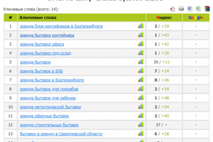 Поисковое продвижение сайта по аренде бытовок в Екатеринбурге