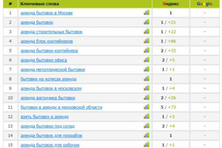 Раскрутка аренды бытовок и блок-контейнеров в ТОП-3