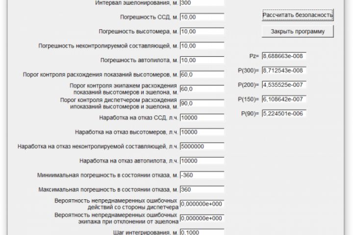 Расчет вероятности перекрытия траекторий летательных аппаратов, летящих на соседних эшелонах. В разработке применялись численные методы решения уравнений.