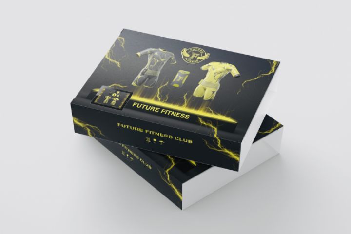 Минималистичный и элитарный дизайн для упаковки самых качественных в России умных фитнес-костюмов будущего.