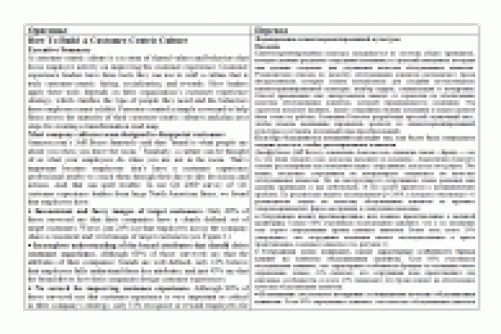 Статья исследовательской компании Forrester Research о формировании клиентоориентированной культуры. Перевод с английского на русский. Отрывок. Объем всей статьи — примерно 33 тысячи знаков с пробелами.