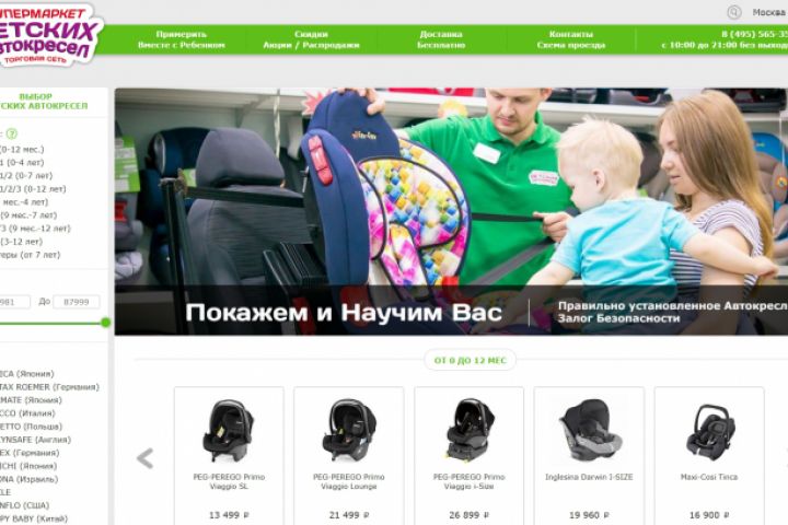 Разработка интернет-магазина детских автокресел. Индивидуальный шаблон на базе платформы 1С-Bitrix. Интеграция с 1С.