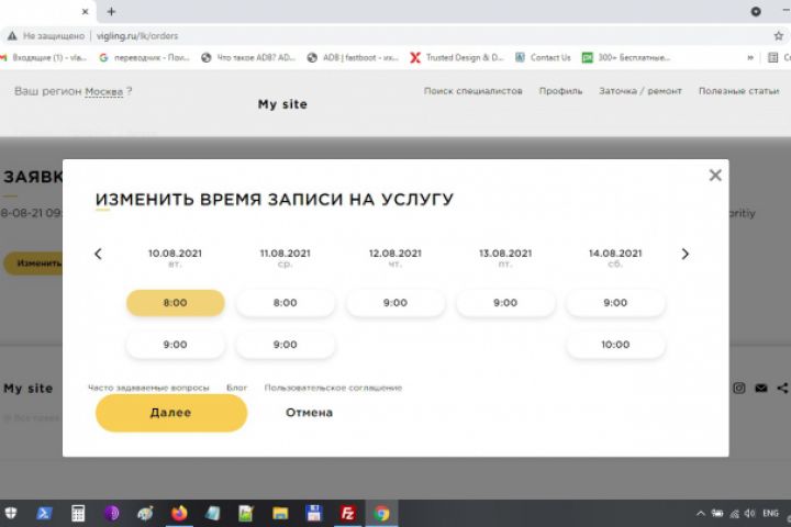 Задача стояла сделать кнопки удаления записи к специалисту и изменения времени записи. Под каждую запись были выведены кнопки, при клике на которые появлялись модальные окна с выбором даты и подтверждением удаления, после чего срабатывала функция обновления записи в базе данных или удаления из базы соответсвующей записи. Данная функциональность была реализавана на jQuery+JSON+PHP