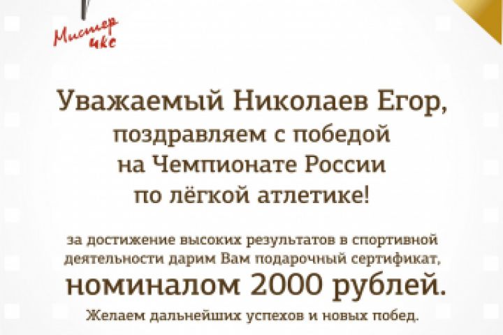 Подарочный сертификат для чемпиона