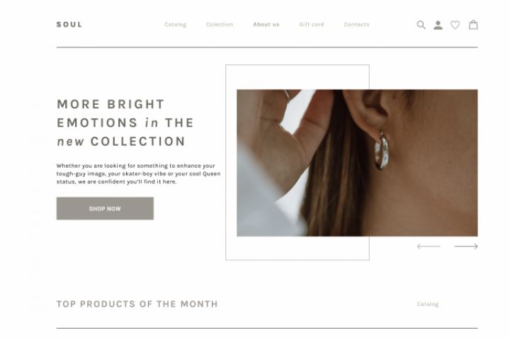 Разработала концепт сайта продумонного бренда ювелирных украшений. Принцип сайта соблюдать эстетику и минимализм работая в светлых тонах.
