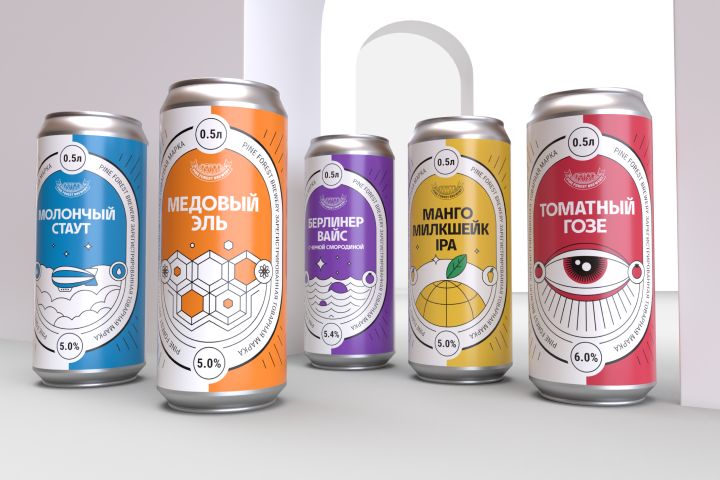 Дизайн крафтовой серии пива Pine Forest Brewery