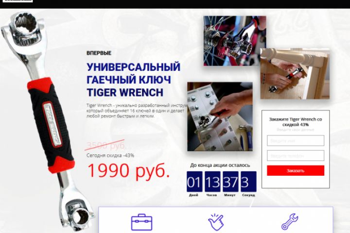 Верстка адаптивного сайта сайт по продаже гаечного ключа.