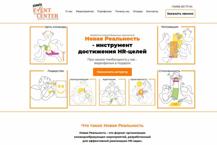 Сайт одностраничник для Event center группа компаний. Разработка и интеграция на WordPress