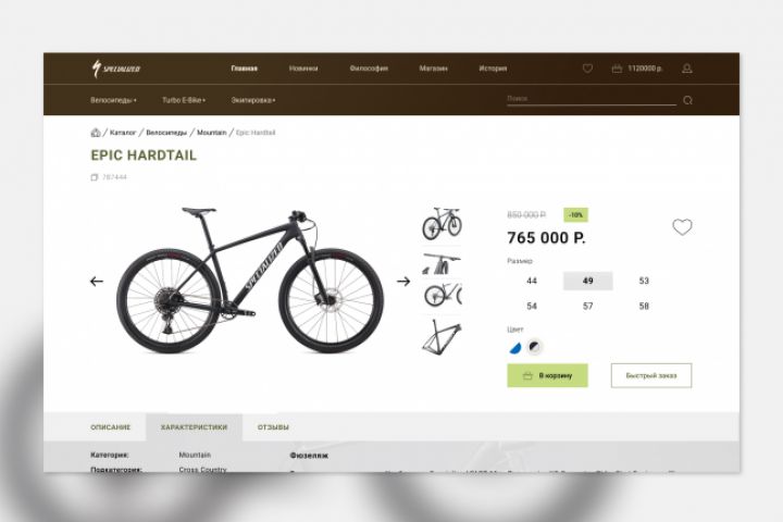 Дизайн интернет-магазина люксовых велосипедов бренда Specialized.