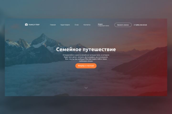 Сайт для заказа семейного путешествия. Выполнена вёрстка и программирование сайта. Вёрстка: адаптивная и кросс-браузерная. Функционал: интерактивный интерфейс, отправка заявок на почту. Технологии: HTML5, CSS3, JavaScript, PHP
