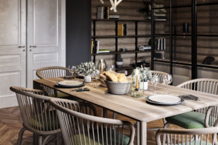 Помещение площадью 35кв.м в бревенчатом доме нужно было разделить на три зоны: кухня, обеденная зона и ТВ зона. В данном помещении попытался совместить уют загородного бревенчатого дома и технологичность современных конструкций, материалов мебели и техники.