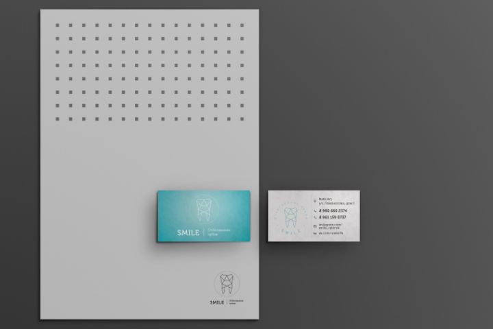 Разработка логотипа и дизайна визитки для студии косметического отбеливания зубов "Smile"