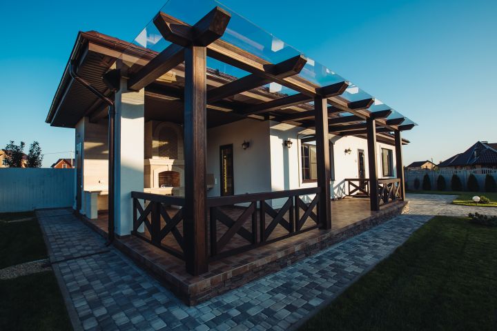 Проект гостевого дома-бани, с зоной барбекю в средиземноморском