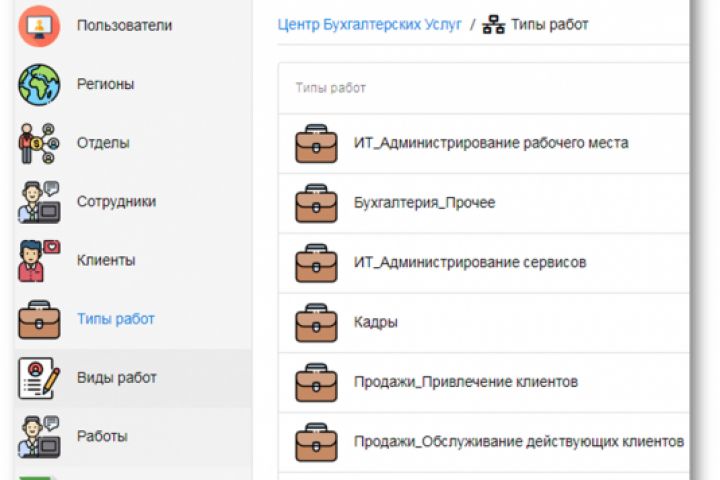 Легко настраиваемый справочник работ позволяет задать структуру рабочих процессов внутри компании
