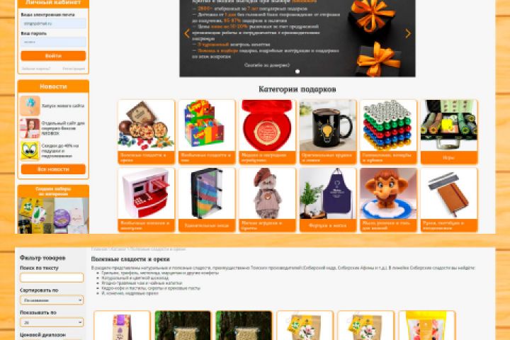 Минисайт (лендинг + каталог и блог) сервиса подарочных наборов
