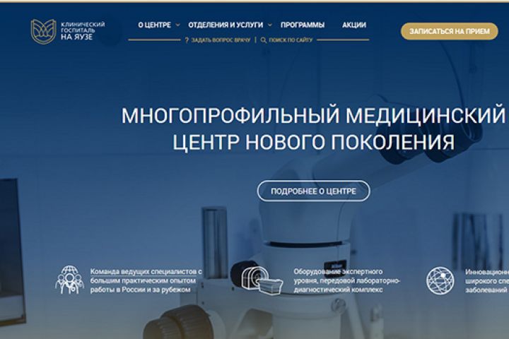 Для сайта написано около 20 текстов: описание заболеваний и методов их диагностики и лечения в госпитале, описание услуг отделений, диагностических и лечебных процедур, аппаратного и лабораторного обследования.