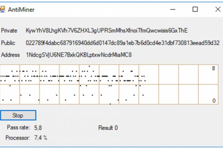 Генератор приватных ключей в блокчейне Bitcoin. Генерирует приватный ключ, затем делает из него публичный и получает адрес в сети. По существующему API проверяет, существует ли такой адрес и результат записывает в файл. Программа повторяет функционал Large Bitcoin Collider.