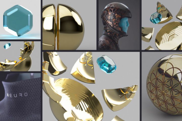 Данный разворот является финальным в буклете и презентует композицию из рендеров 3д модели шара-скафандра.
