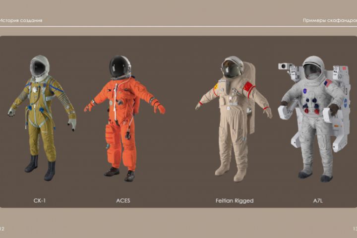 Данный разворот был создан для печать буклета - книжки, которая посвящена истории развития скафандра.