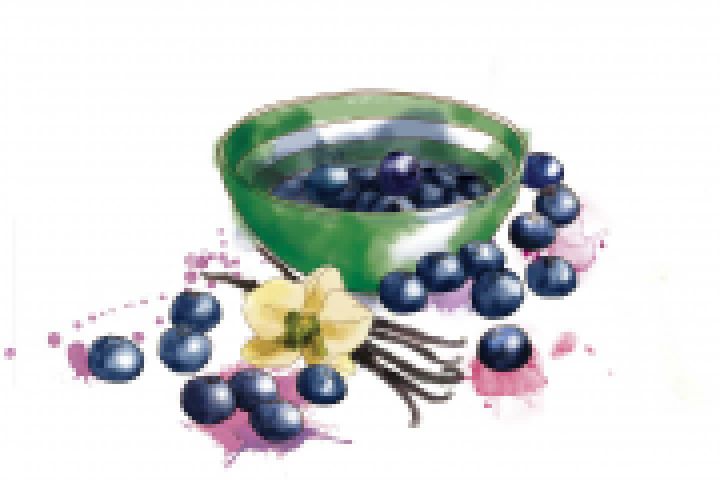 Акварель, реклама, упаковка, натюрморт, продукты, еда, черника, ваниль