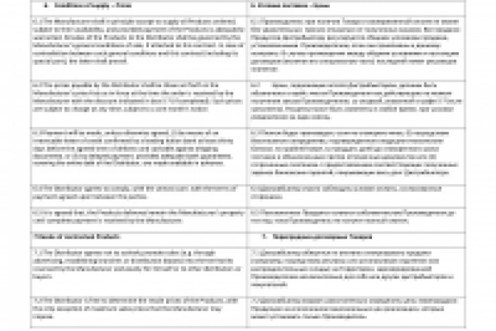 Часть международного эксклюзивного дистрибьюторского договора