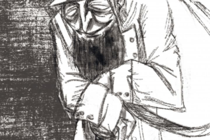 Иллюстрация выполнена в черно - белой стилистике, особенностью является рисование текстурами