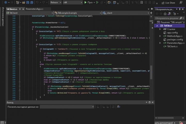 Клиент был написан для отправки, приема сообщений непосредственно из CRM клиента. Консольное приложение. Работает в фоновом режиме. Получает необходимые параметры от приложения, производит чтение и запись в БД CRM.