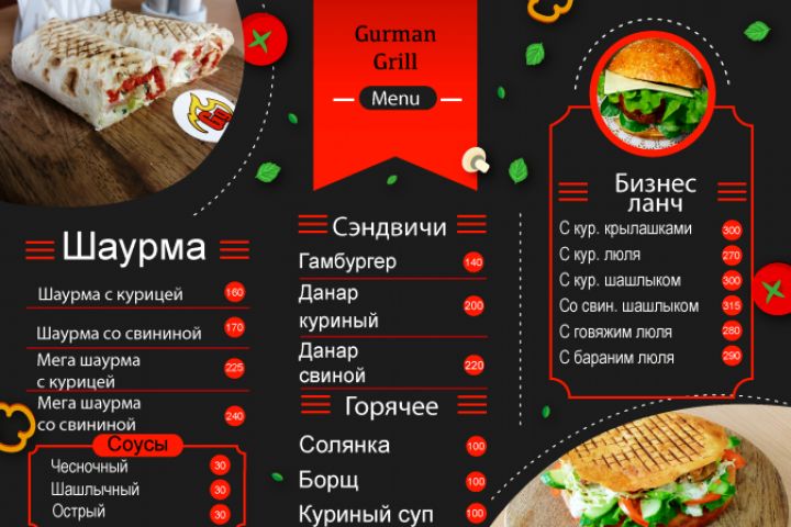 Кафе Гурман Грилл в городе Псков требовалось меню с их основными блюдами, и они попросили меня выполнить данную работу