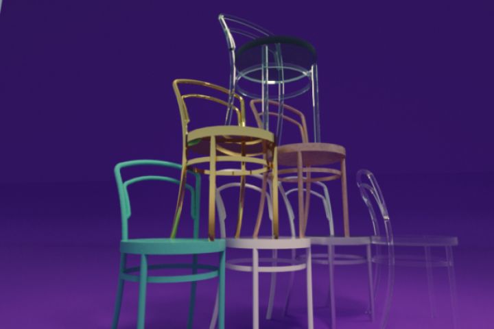Композиция стульев из различных материалов