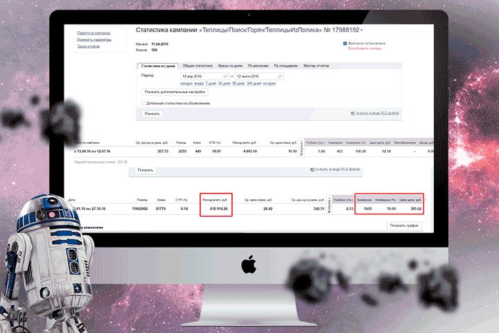 CTR 19,07% одной из рекламный компаний на поиске по Теплицам.