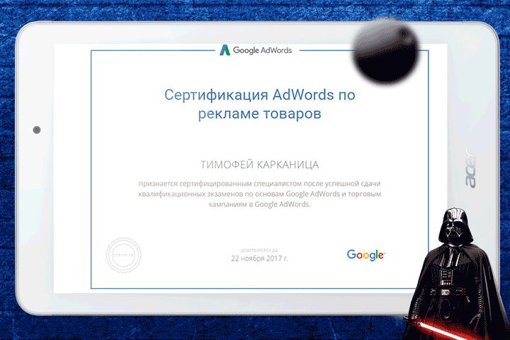 Сертификат Google по рекламе товаров