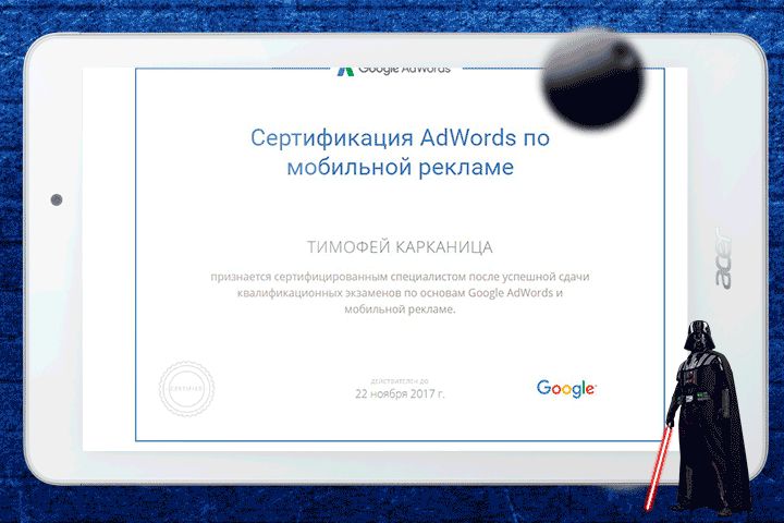 Сертификат Google по мобильной рекламе