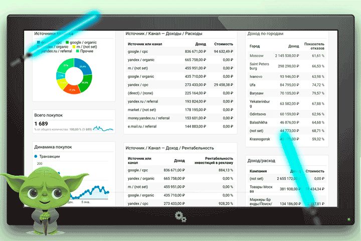 Полная настройка Google Analytics. Настройка отображения дашбордов, чтобы держать важный показатели "на пульсе". Быстрый доступ к основным показателям аналитики.