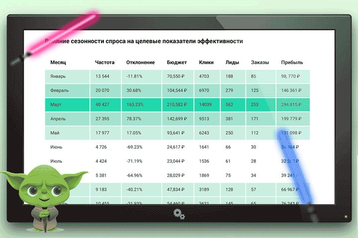 Расчет медиаплана по сезонным товарам. Проведение декомпозиции в разрезе месяцев исходя из сезонности спроса. Расчет предполагаемого бюджета и полученной прибыли.
