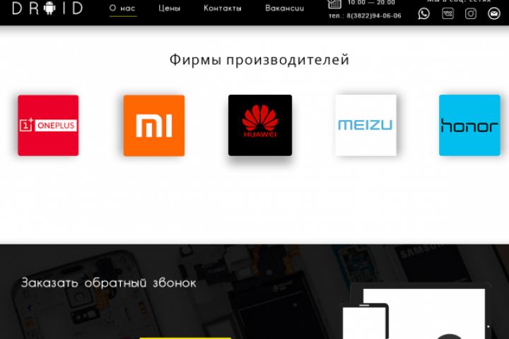 Дизайн сайта для компании "DROID", занимающейся ремонтом телефонов.