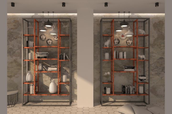Стеллаж в квартиру заказчика по нашему проекту. Металл, порошковая окраска, камень