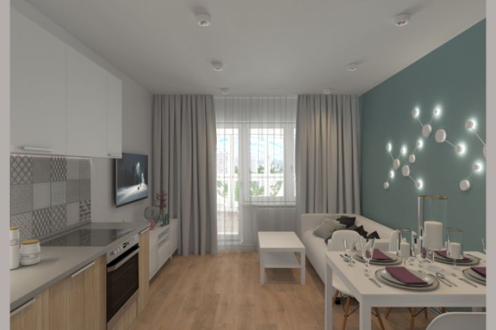 Помещение кухни совмещает в себе 3 функции - зона готовки, зона столовой и зона отдыха