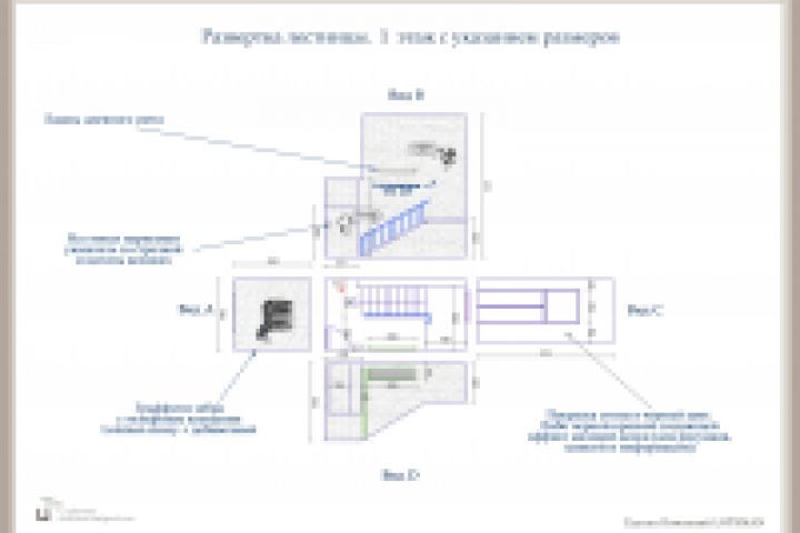 Дизайн-проект офиса для группы компаний Lotsman. Развертка лестницы с указанием размеров