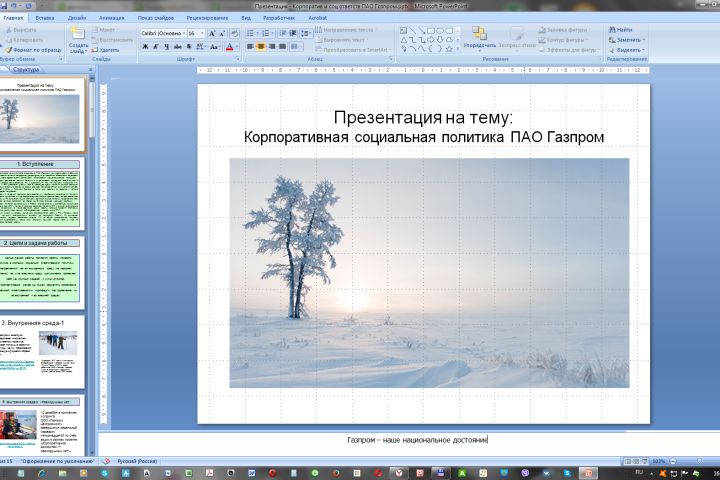 орпоративная социальная ответственность (КОС) ПАО "Газпром" - презентация работы.