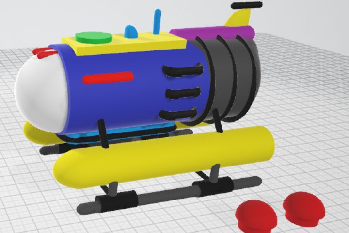 Детская игрушка - подводная лодка для печати не 3D принтере. На подводной лодке есть герметичные резервуары для груза, так же есть крышки для резервуаров.