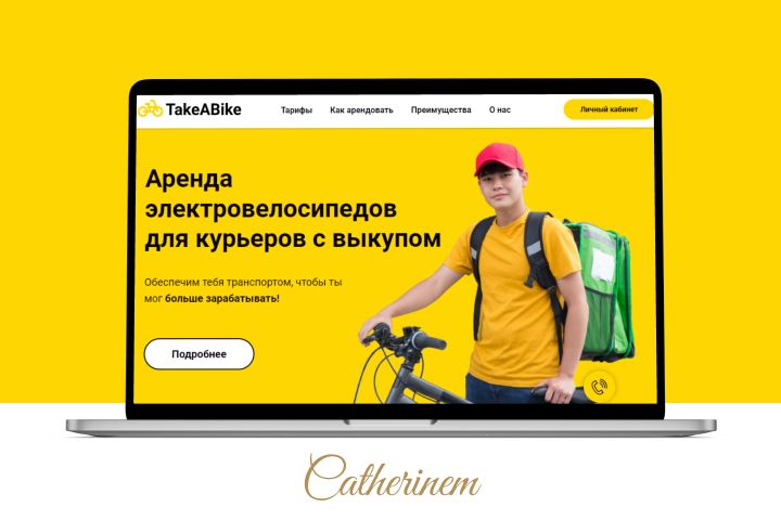 Сервис TakeABike занимается арендой электровелосипедов на длительный срок. Сайт выполнен на Тильде, использованы как стандартные, так и нулевые блоки. Задача заказчика состояла в том, чтобы сделать простой, функциональный сайт в желто-черной цветовой гамме. Сайт адаптирован под все устройства.